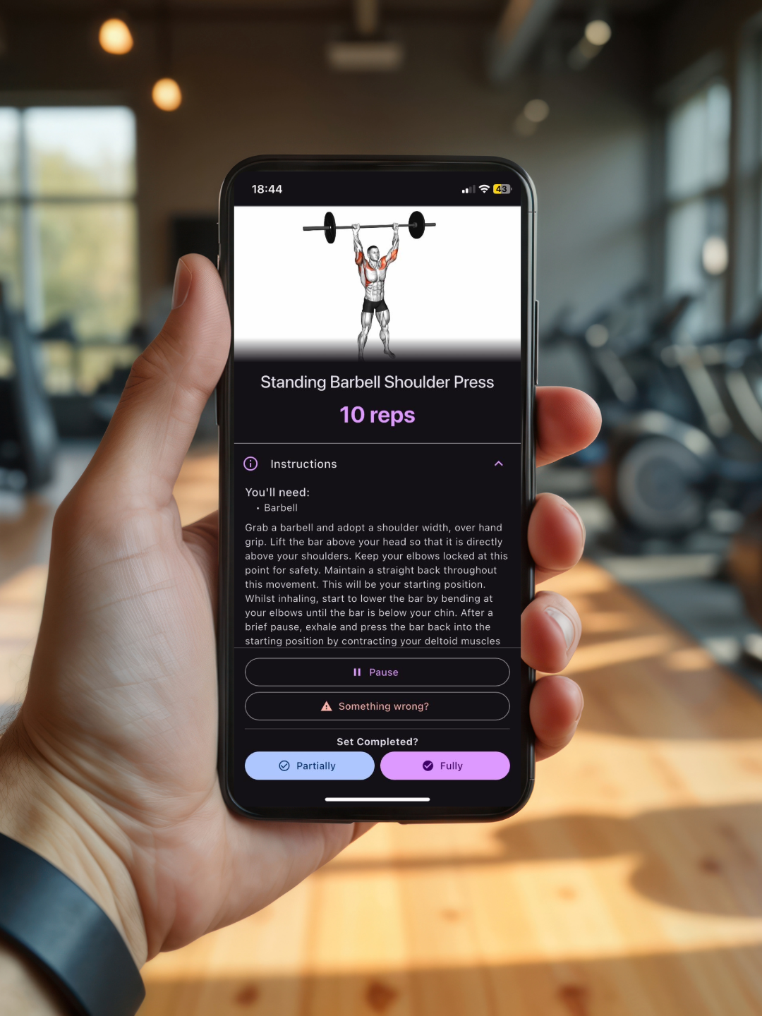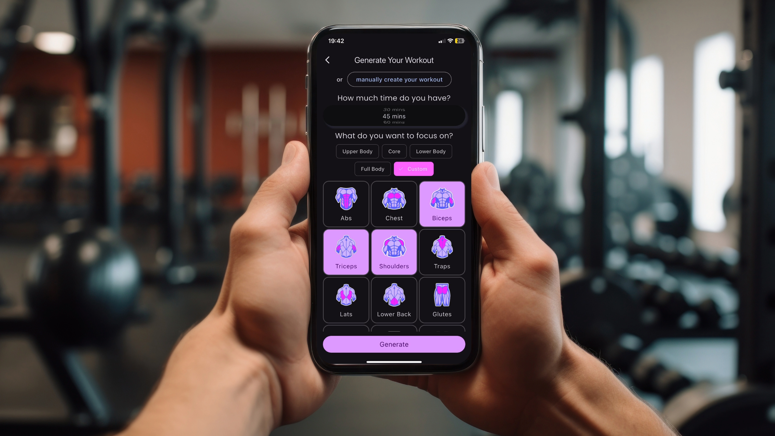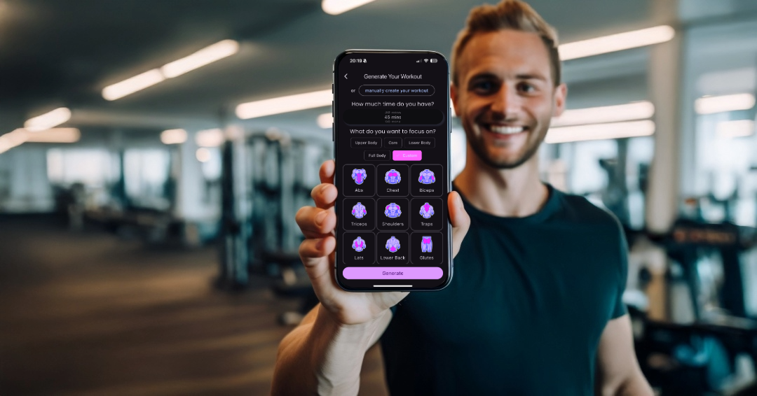 The app builds structured workouts in seconds and gives you instant alternatives when equipment is busy.